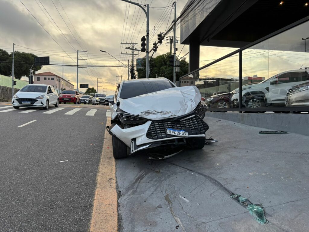 Um grave acidente deixou quatro pessoas feridas na manhã desta quarta-feira, 05 de novembro, na Avenida Ramos Ferreira, no Centro de Manaus. Um carro de aplicativo, modelo Gol, foi atingido por um veículo importado que, segundo testemunhas, avançou o sinal vermelho. O impacto arremessou o carro da vítima para o nível inferior da via.