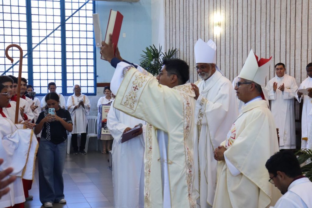 Com o lema diaconal “Vai e, também tu, faze o mesmo” (Lc 10,37b), o seminarista André Lincoln Silva Braga foi ordenado diácono pela imposição das mãos de Dom Samuel Ferreira, bispo auxiliar da Arquidiocese de Manaus. A celebração solene aconteceu na Paróquia São Francisco de Assis, no último sábado (21). Concelebraram os bispos Dom Zenildo Lima e Dom Hudson Ribeiro e demais padres presentes. Esta é uma etapa que antecede a ordenação presbiteral.