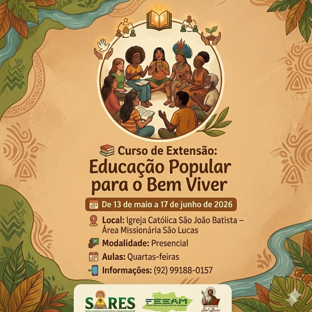 O curso de extensão “Educação Popular para o Bem Viver”, reúne o Serviço Amazônico de Ação, Reflexão e Educação Socioambiental (SARES) e o Fórum Estadual de Educação do Amazonas. O curso pretende fortalecer a vida em comunidade e incentivar a troca de conhecimentos a partir da realidade amazônica.