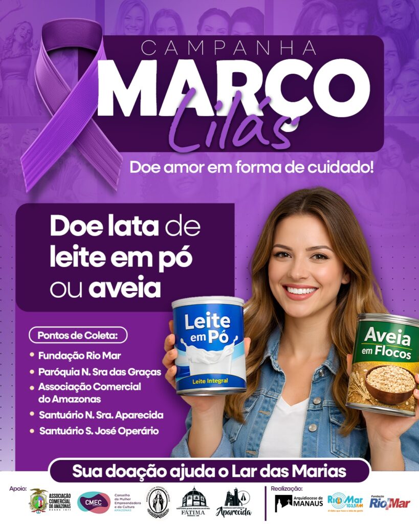 A campanha segue até a próxima segunda-feira, 30 de abril. A população é convidada a doar uma lata de leite em pó e uma caixa de aveia. A arrecadação será doada ao Lar das Marias. A instituição atua há 20 anos em Manaus, e abriga mulheres em tratamento contra o câncer vindas do interior do Amazonas e de outros estados, como Pará e Roraima.