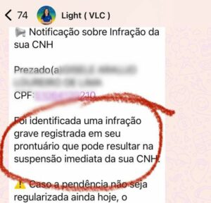 O órgão reforça que não existe processo para cancelamento imediato da CNH e alerta que não envia mensagens via WhatsApp notificando sobre infrações ou solicitando pagamentos.