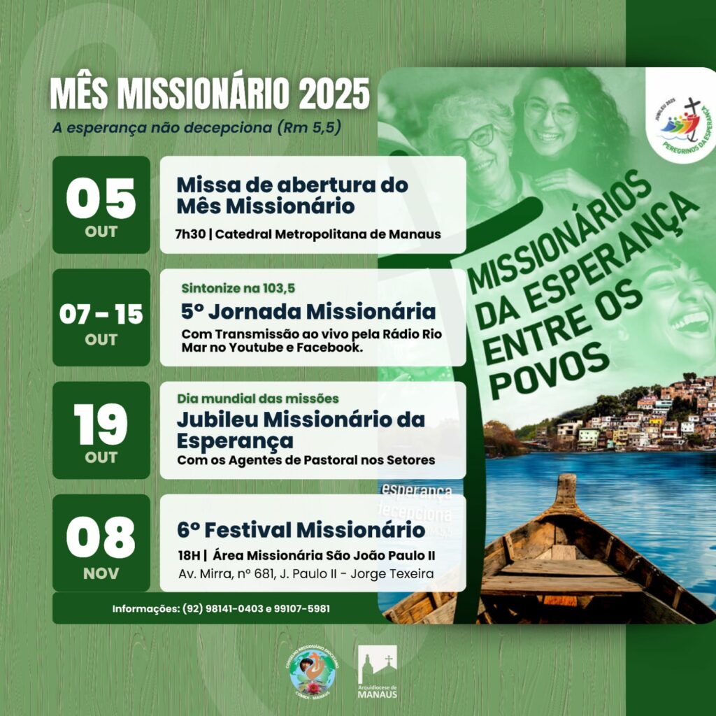O Mês Missionário de 2025, com o tema “Missionários da Esperança entre os Povos”, é um convite à Igreja e aos cristãos de todo o Brasil a se tornarem instrumentos de esperança no mundo, especialmente nas regiões mais vulneráveis.