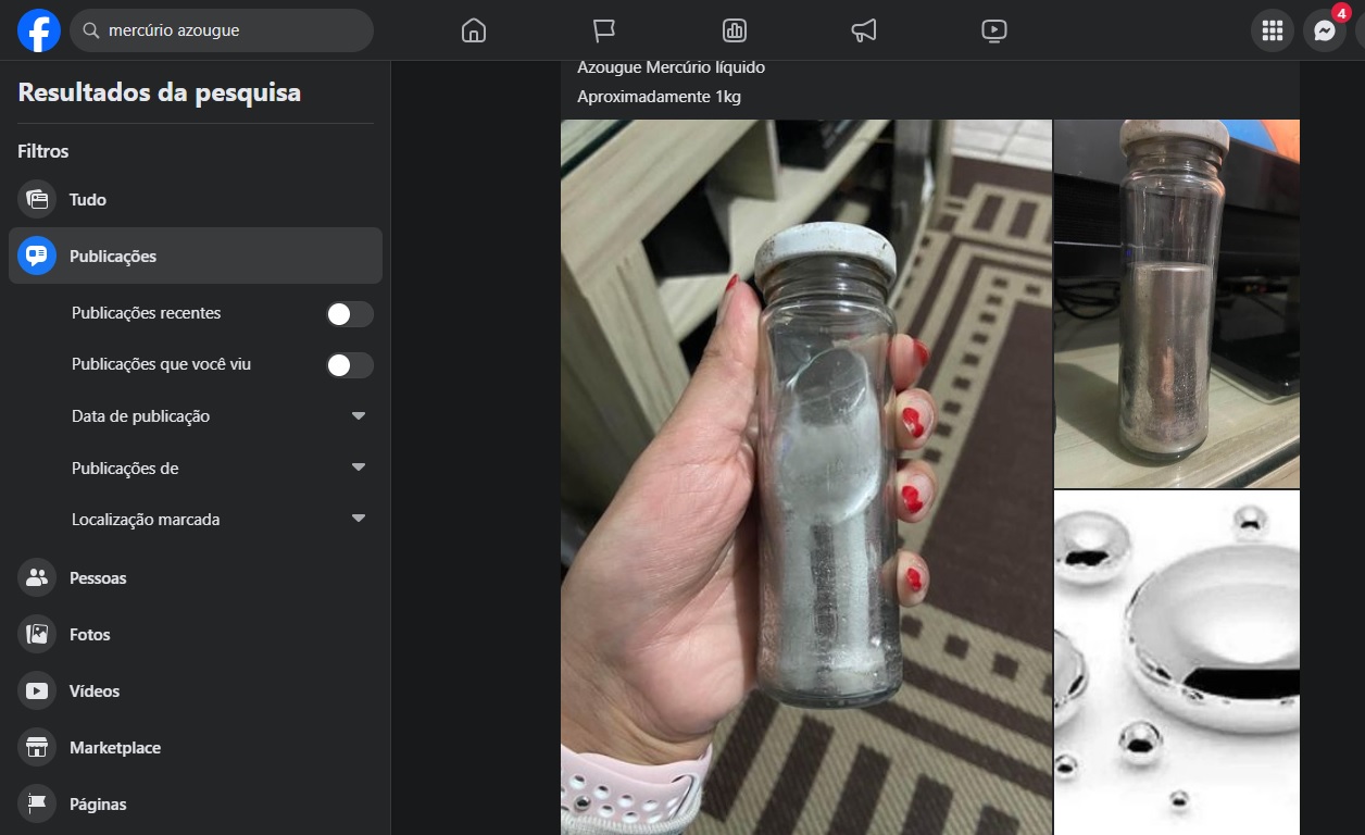 A apuração também indica que o Facebook noticiou a remoção dos anúncios da plataforma Marketplace. Contudo, eles permanecem ativos em páginas de grupos, perfis de usuários e outros textos especialmente destinados à compra e venda de mercúrio líquido contrabandeado.
