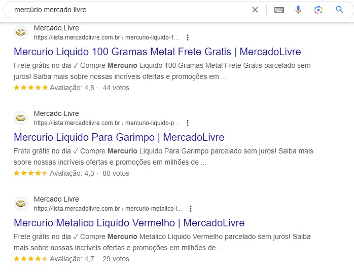 Foto: Reprodução/ Mercado Livre / mercúrio