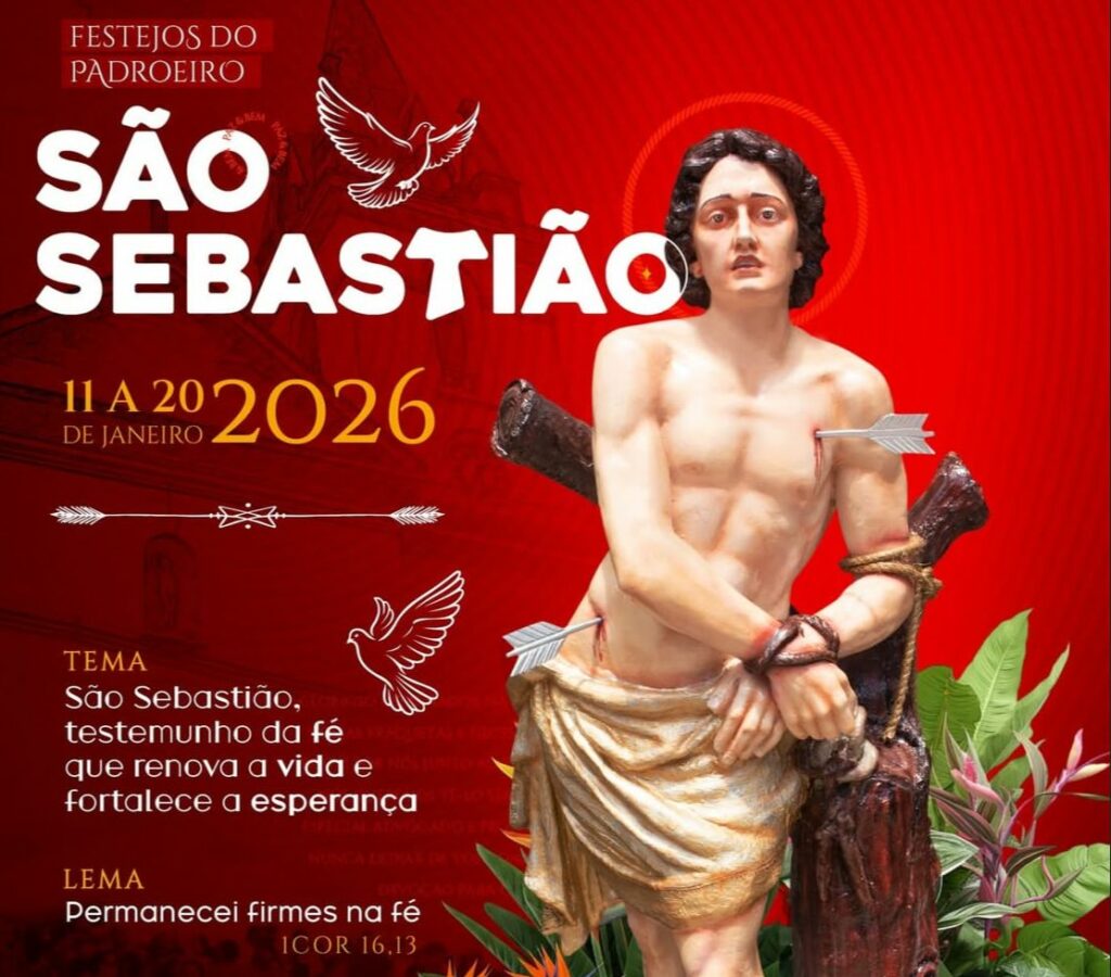 Com o tema “São Sebastião, testemunho da fé que renova a vida e fortalece a esperança” e o subtema “Permanecei firmes na fé”, inicia neste domingo, 11 de janeiro, o Novenário em honra ao padroeiro. O momento marca um tempo especial de oração, devoção e fortalecimento espiritual para toda a comunidade.