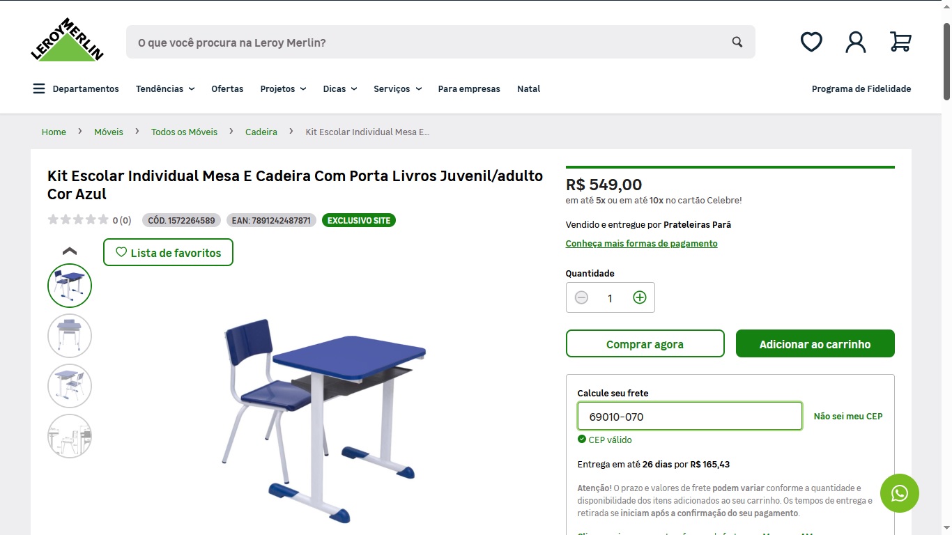 Em consulta na internet, é possível encontrar o mesmo conjunto de mesa e cadeira escolares por menos de R$ 574, com frete incluso, na loja Leroy Merlin, com envio a partir do Estado do Pará. Ou seja, a diferença é de R$ 416 por unidade, com preço 42% mais barato do que o pago pela prefeitura de Manaus.