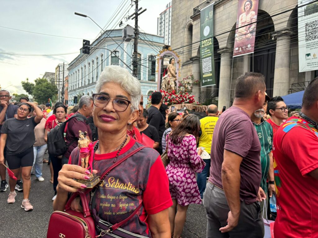 Entre os devotos estava Cilfarney Paulino, que participou da programação para agradecer graças alcançadas e pedir a intercessão do santo pela saúde de familiares. Ela contou que a devoção a São Sebastião começou em 2005, após enfrentar um momento difícil em sua vida, e desde então mantém uma relação de fé e gratidão com o padroeiro.