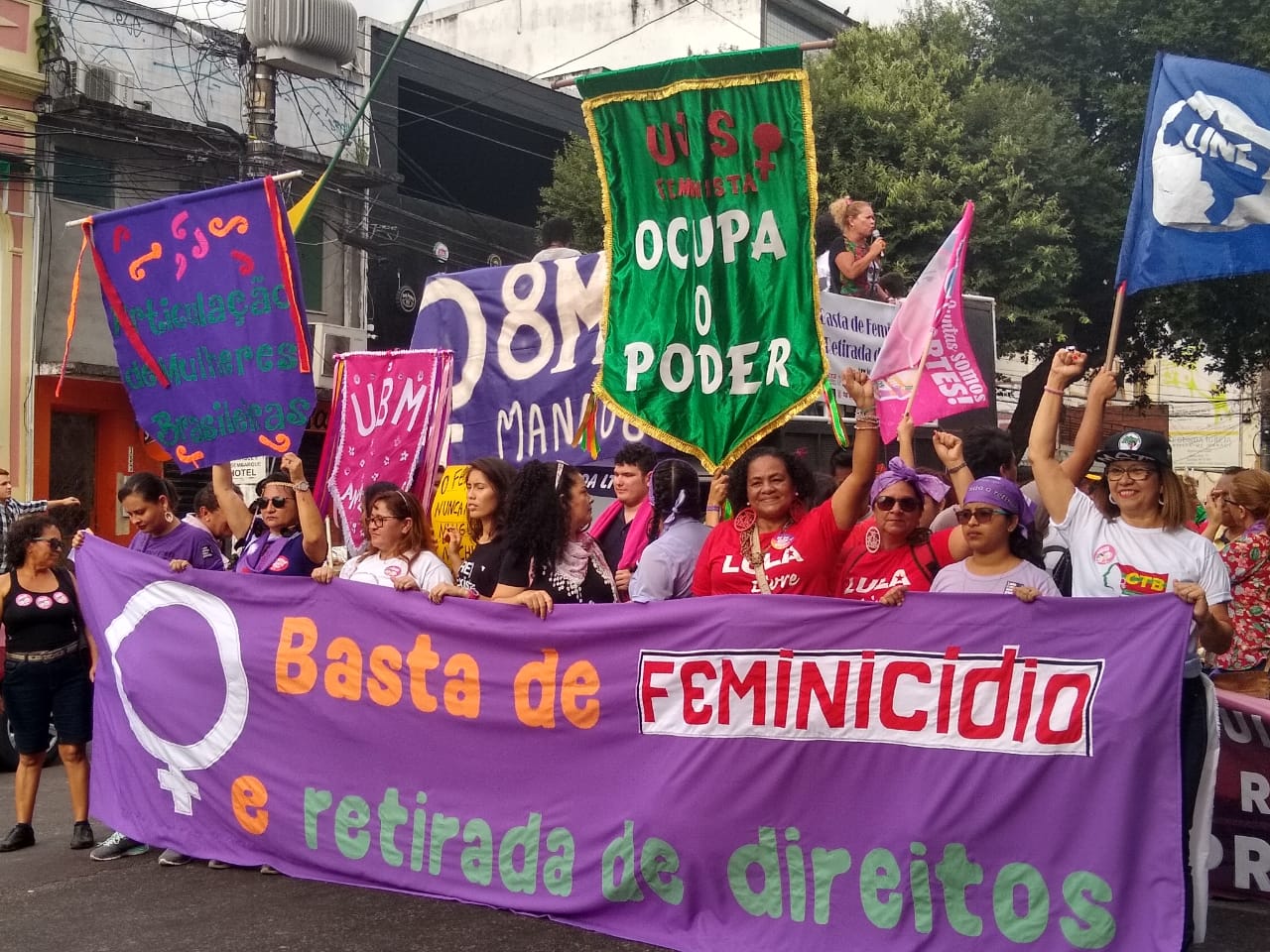 Este ano, o ato refletiu o tema “Basta de Feminicídio e Retirada de Direitos.
