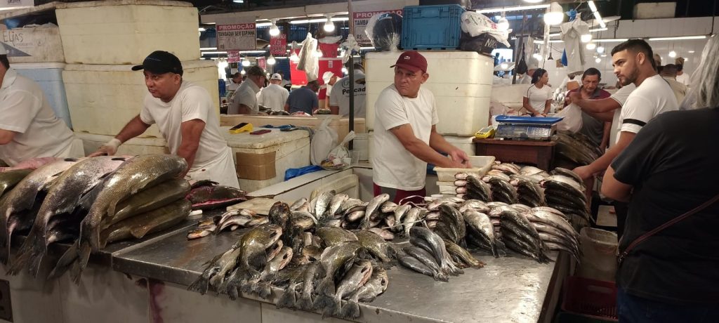 A tradição também fortalece a economia e a cultura alimentar no Amazonas. Um dos principais pontos de comercialização de pescado da capital apresenta mais bancas abastecidas, maior circulação de clientes e expectativa positiva entre os trabalhadores.